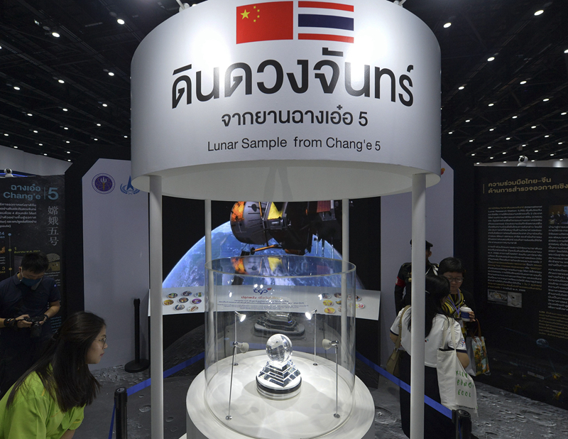 7月下旬,泰国诗丽吉王后国家会议中心,来自中国的嫦娥五号月壤样品,吸引络绎不绝的观众。