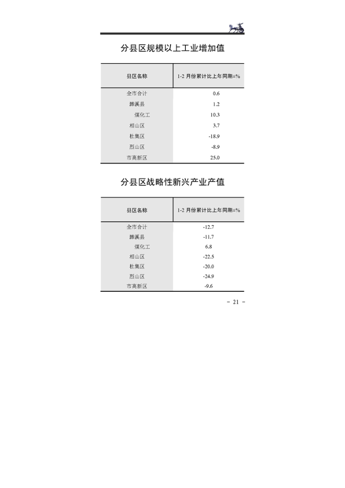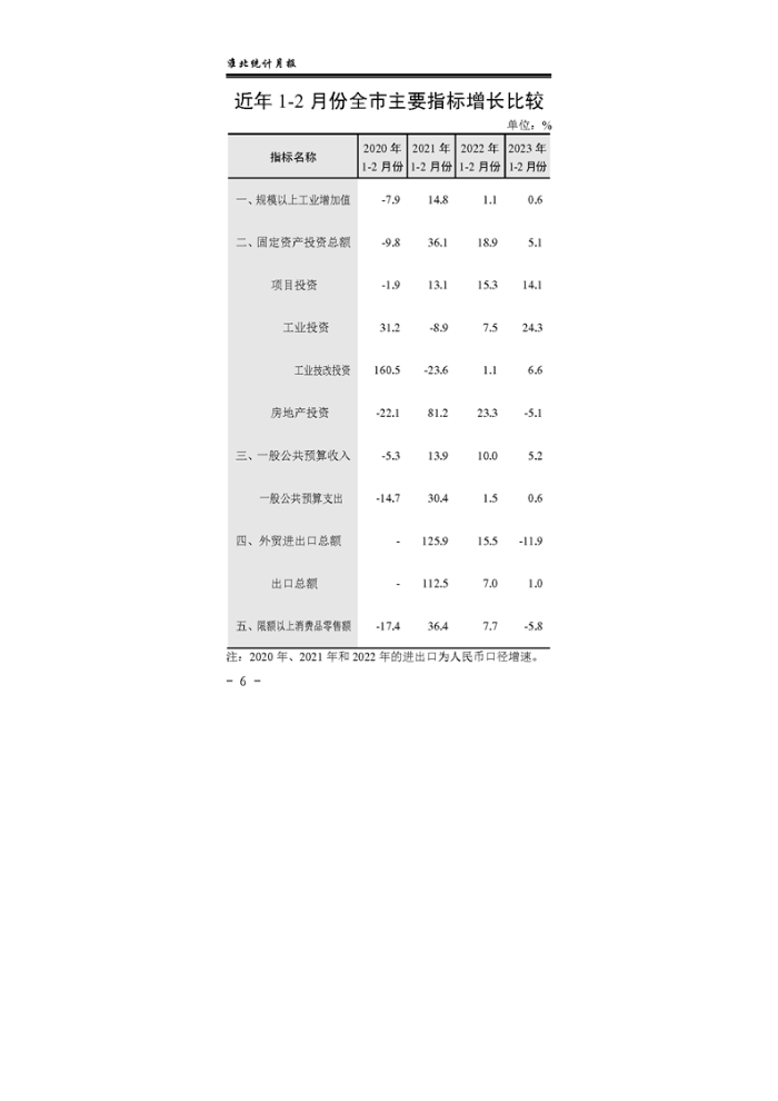 淮北市2023年1-2月份全市月度经济运行监测