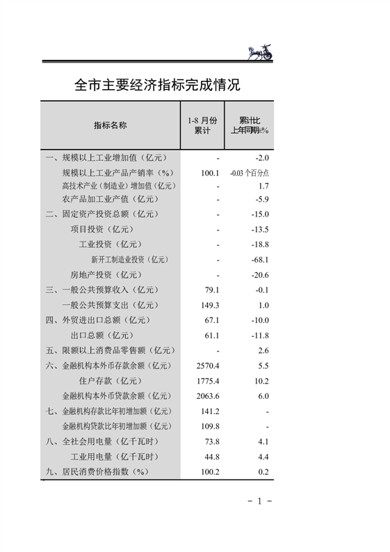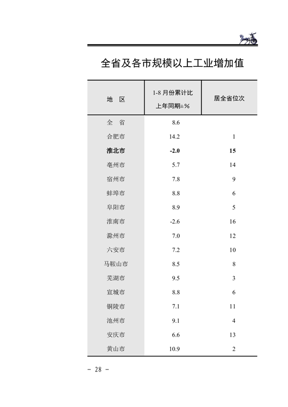 【经济运行监测】淮北市2025年1-8月份月度经济运行监测