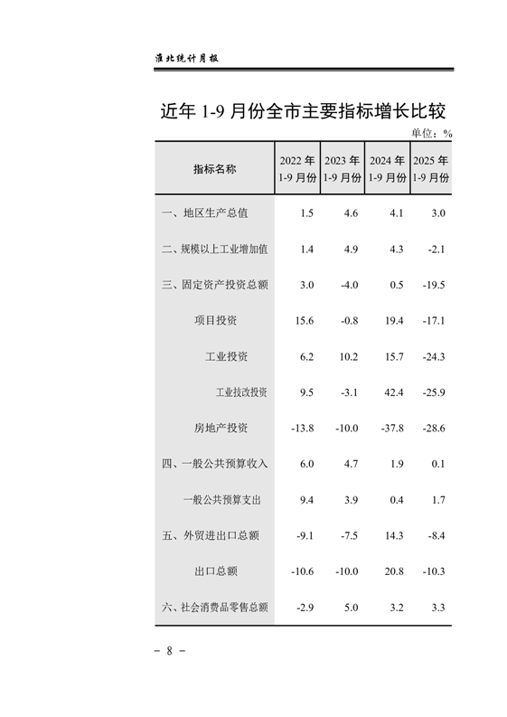 【月度经济运行监测】淮北市2025年1-9月份月度经济运行监测