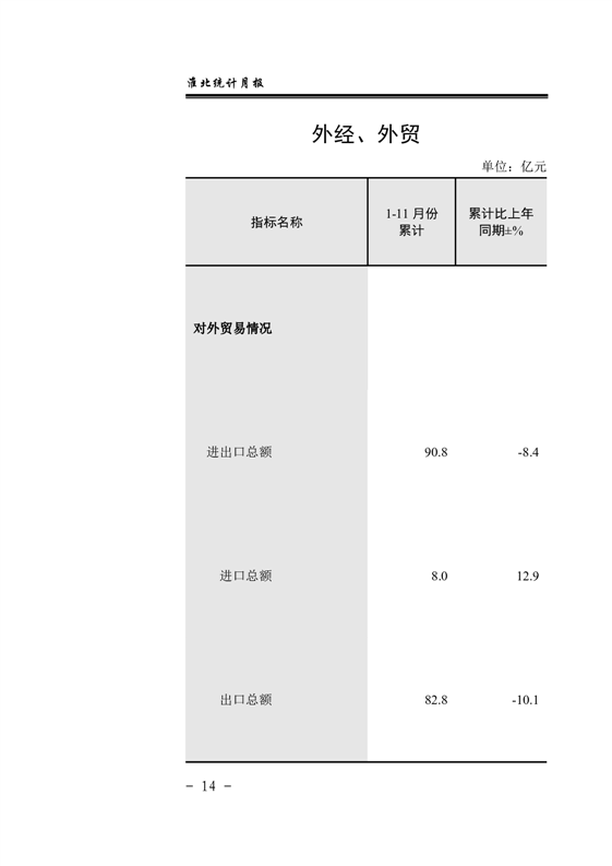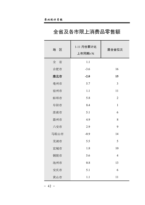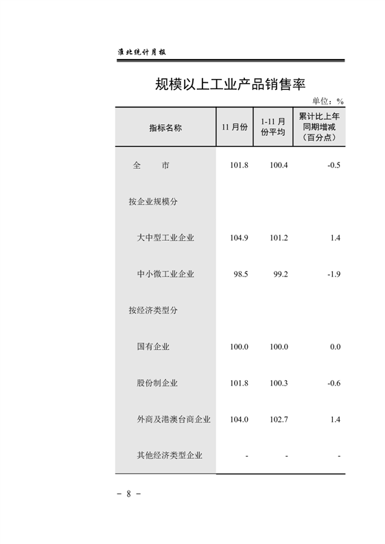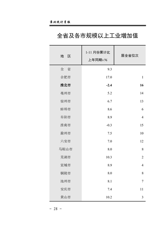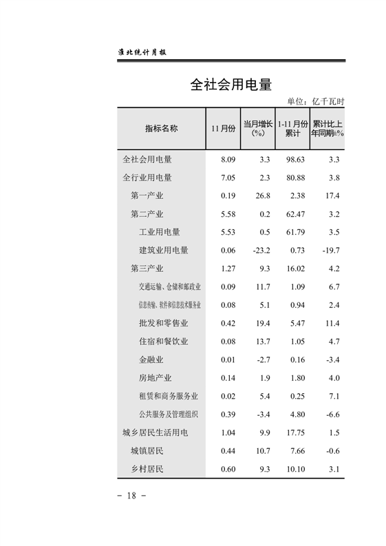 【月度经济运行监测】淮北市2025年1-11月份月度经济运行监测