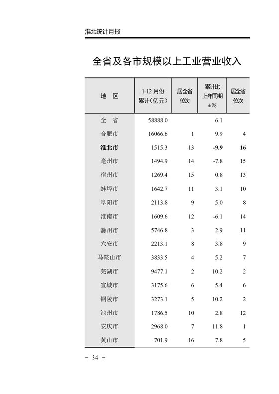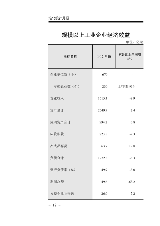 【月度经济运行监测】淮北市2025年1-12月份月度经济运行监测